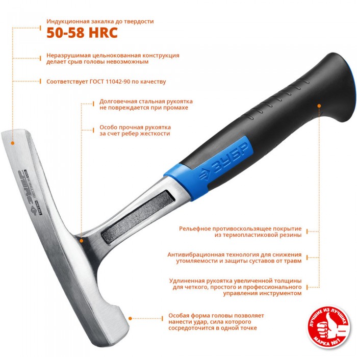 Цельнокованый молоток каменщика 600 г ЗУБР Профессионал 20145-600