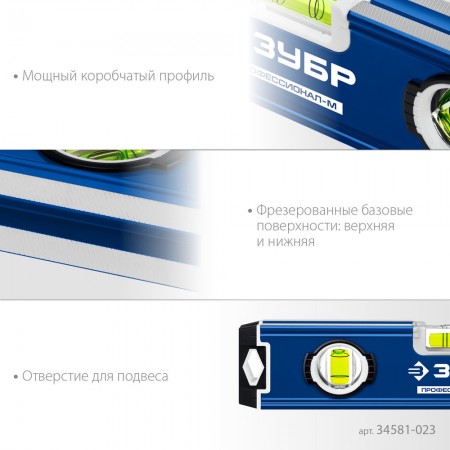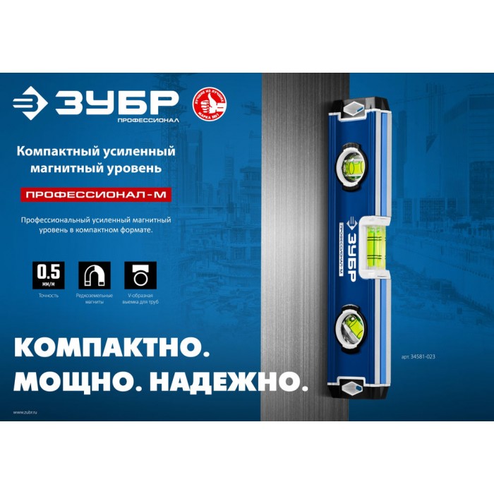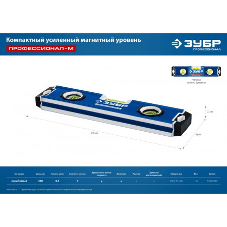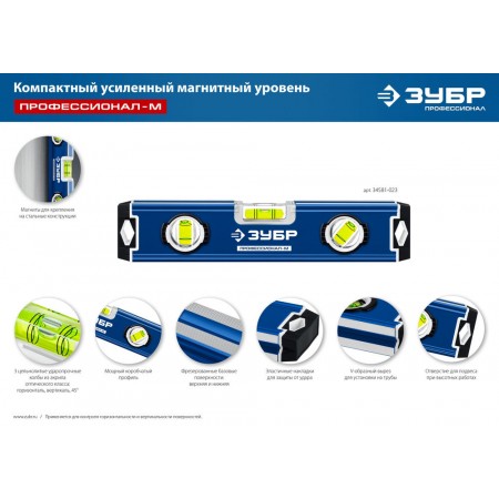 Уровень магнитный компактный усиленный 230 мм ЗУБР ПРОФЕССИОНАЛ-М 34581-023