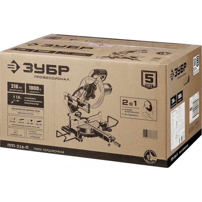 Пила торцовочная с протяжкой d 216 х 30 мм 1800 Вт ЗУБР Профессионал ППТ-216-П ППТ-216-П