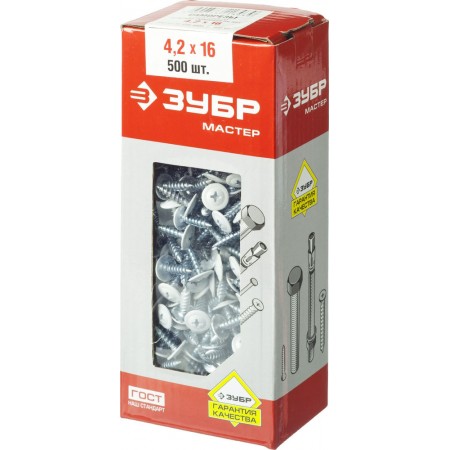 Саморез с пресс-шайбой 16 х 4.2 мм, белый, 500 шт ЗУБР ПШМ 9003 300191-42-016-9003