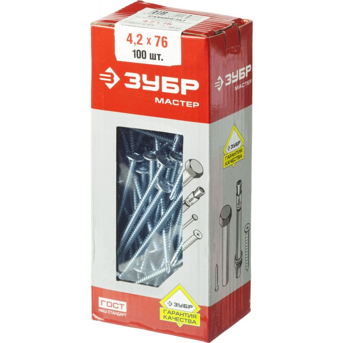 ЗУБР ПШМ-С, 76 х 4.2 мм, цинк, 100 шт, саморез с пресс-шайбой и сверлом (4-300211-42-076)