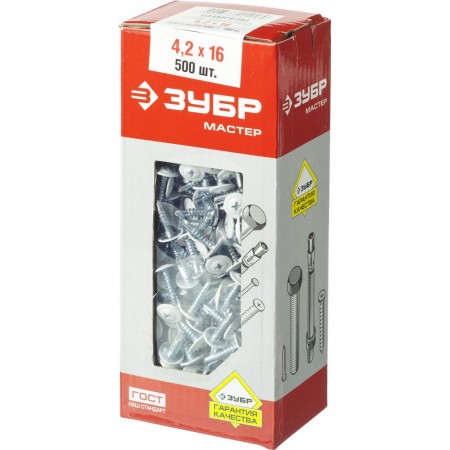 Саморез с пресс-шайбой и сверлом 16 х 4.2 мм, белый, 500 шт ЗУБР ПШМ-С 9003 300211-42-016-9003