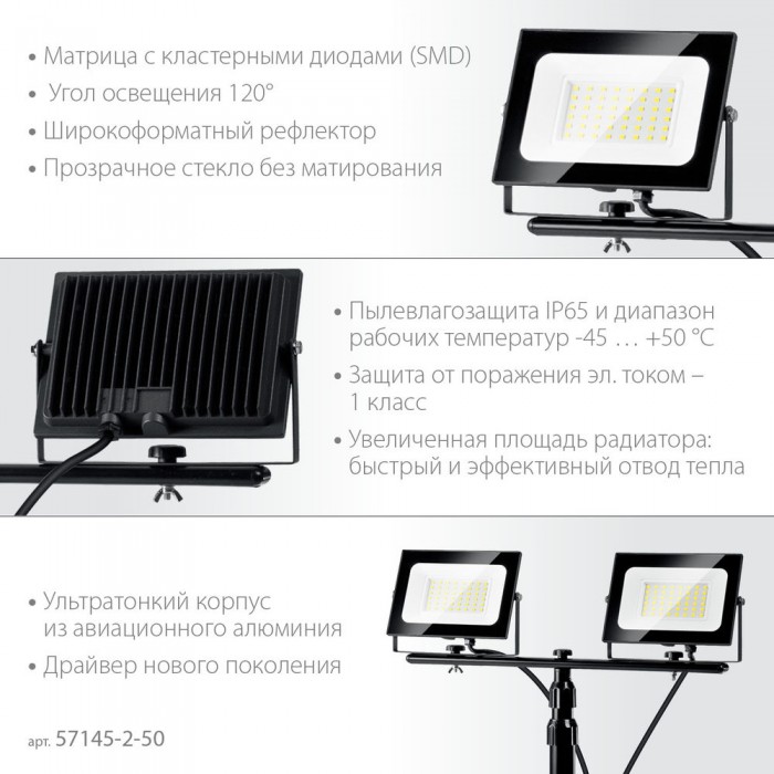 для наружного освещения на открытых строительных и производственных площадках. Используется для подсветки объектов: витрин, экспозиций, рекламных стендов и щитов, фасадов зданий и т.п. Прожекторы могут также применяться для внутреннего освещения больших помещений: залов, спортивных помещений, автостоянок. Конструкция прожектора и применяемые материалы обеспечивают высокую механическую прочность и защиту от проникновения пыли и влаги по классу IP65.