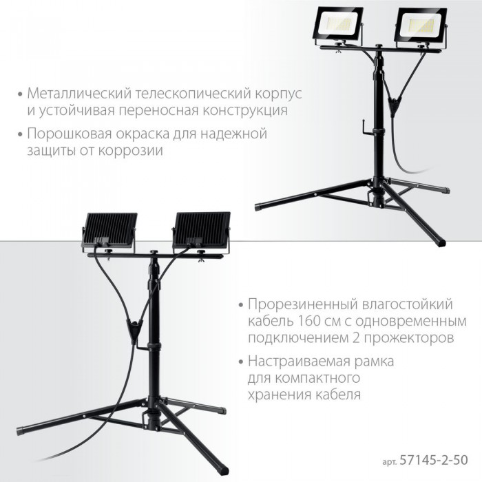 - Длинный кабель с одновременным подключением 2-х прожекторов