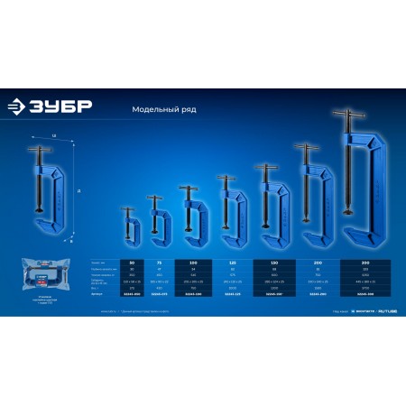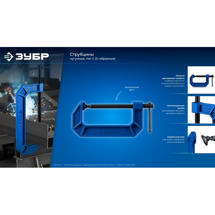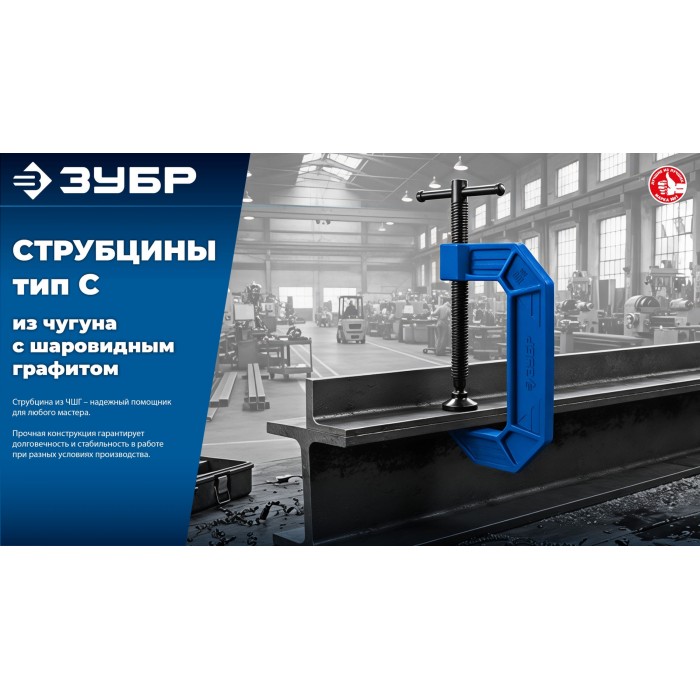 ЗУБР ПСС-100, 100 мм,чугунная струбцина тип С (G-образная), Профессионал (32245-100_z03)