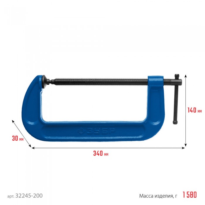 Струбцина чугунная тип С (G-образная) 200 мм ЗУБР ПСС-200 Профессионал 32245-200_z02