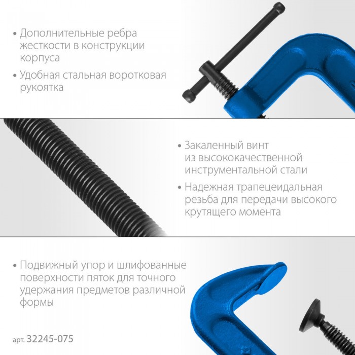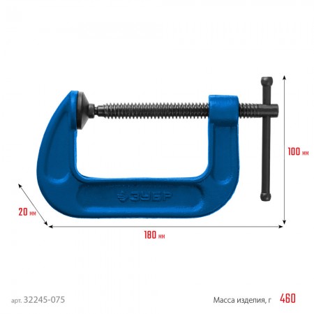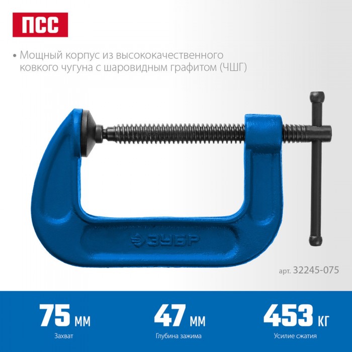 Струбцина чугунная тип С (G-образная) 75 мм ЗУБР ПСС-80 Профессионал 32245-075_z02