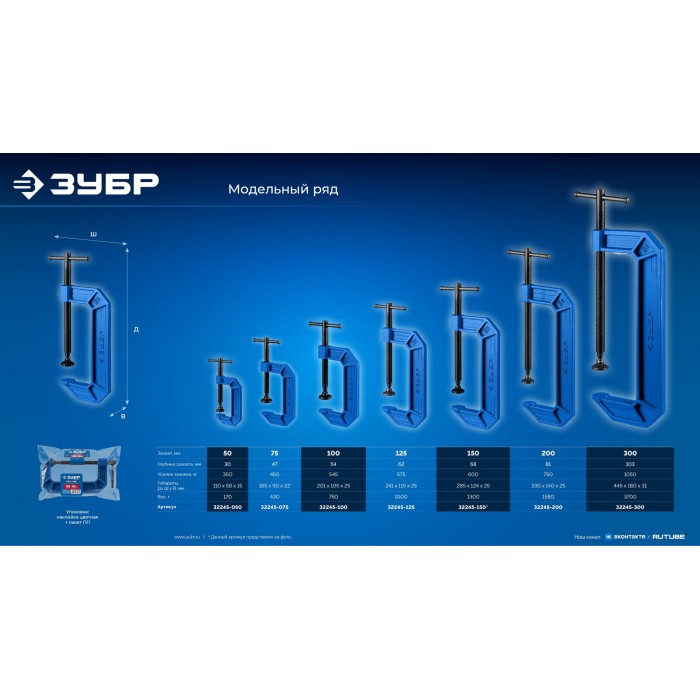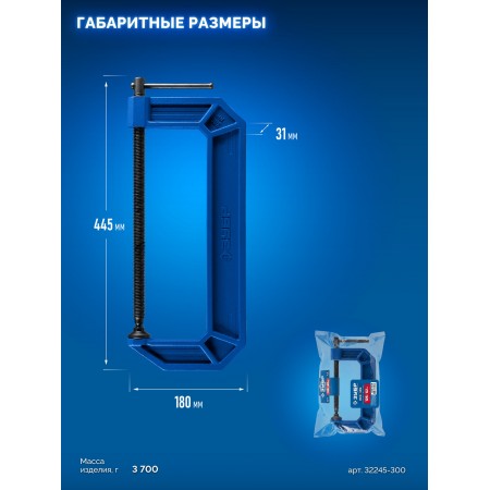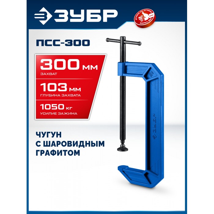 ЗУБР ПСС-300, 300 мм, чугунная струбцина тип С (G-образная), Профессионал (32245-300_z03)