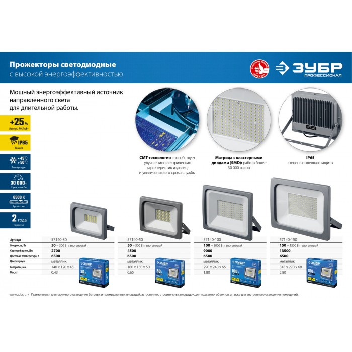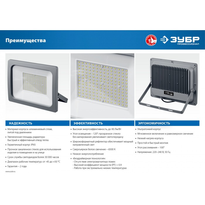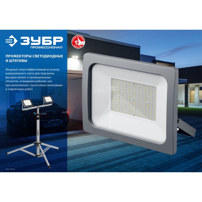 ЗУБР ПСВ-150, 150 Вт, 6500K, IP 65, светодиодный прожектор, Профессионал (57140-150)