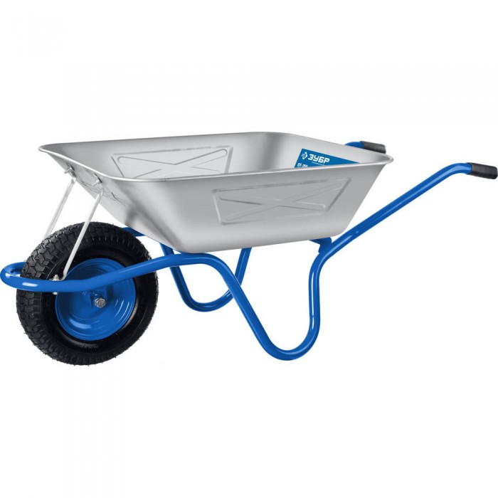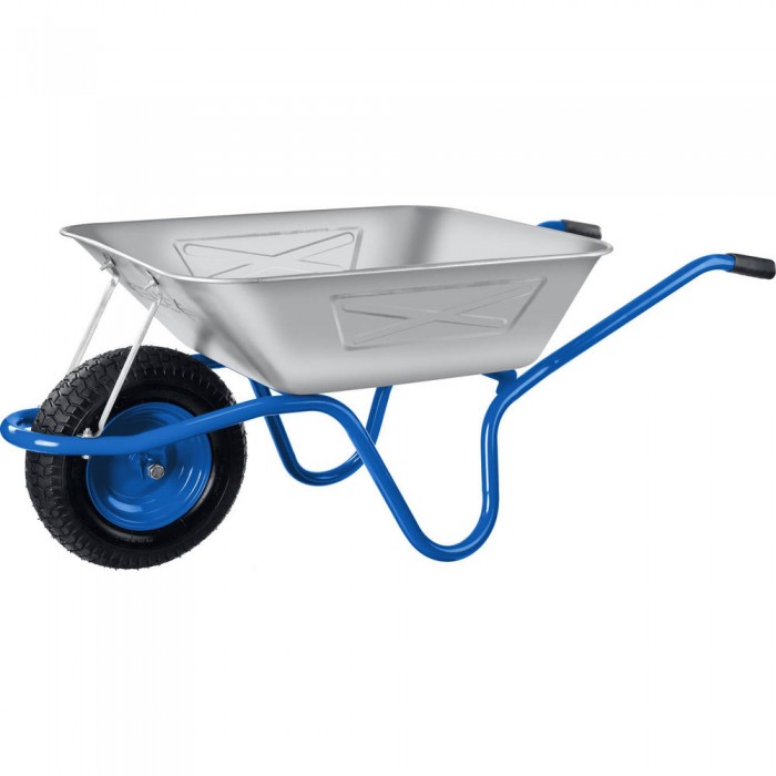 -Стальной кузов толщиной 0,9мм и объемом 130л для сыпучих грузов имеет цинковое покрытие, обеспечивающее защиту тачки от внешних воздействий.,