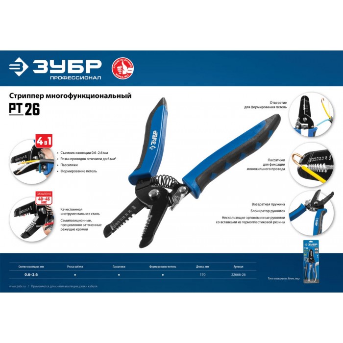 - Многофункциональный инструмент позволяет быстро и качественно выполнить электромонтажные работы