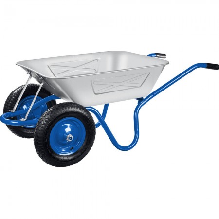 -Cтальной кузов толщиной 0,9мм и объемом 130л для сыпучих грузов имеет цинковое покрытие, обеспечивающее защиту тачки от внешних воздействий.,