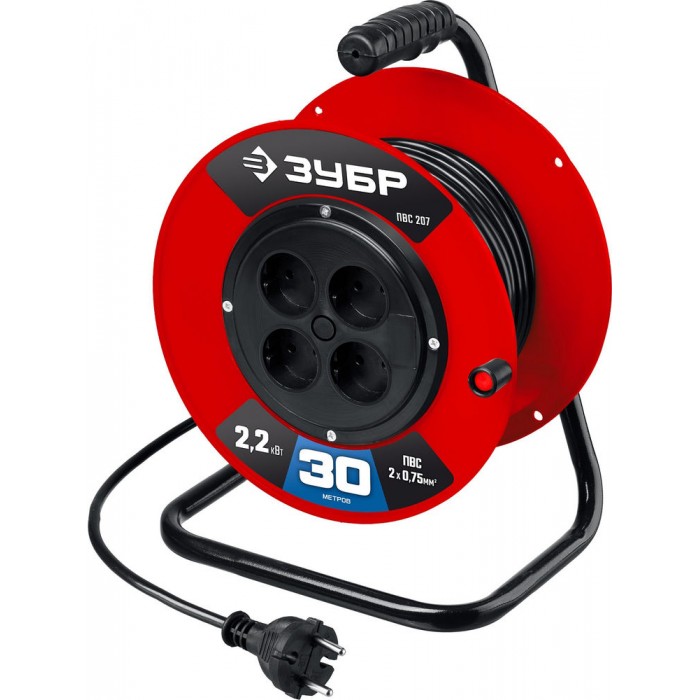 Удлинитель на катушке ПВС 2 x 0.75 мм2 30 м 2200 Вт ЗУБР ПВС-207 55083-30_z01