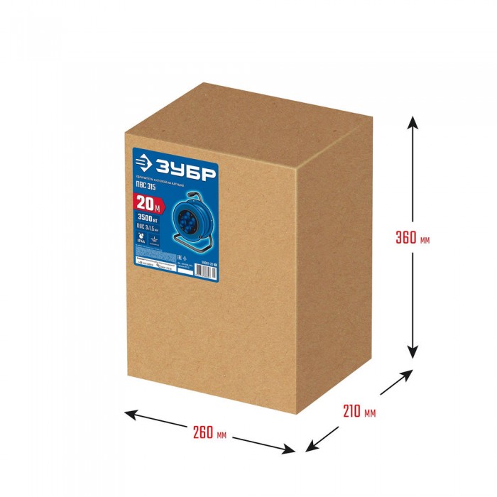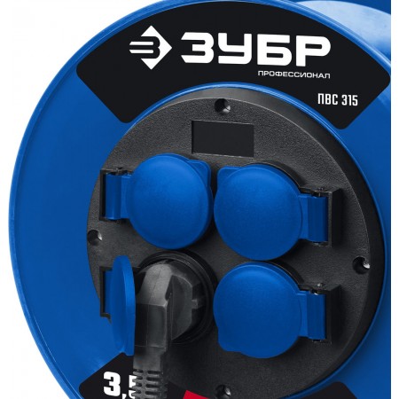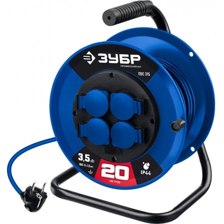 Удлинитель силовой на катушке ПВС 3 x 1.5 мм2 20 м 3500 Вт IP44 ЗУБР ПВС-315 Профессионал 55081-20_z01