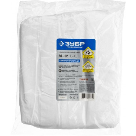 Комбинезон защитный р. 50-52 из спанбонда, микропористый материал 50 г/м2 Профессионал ЗУБР 11609-50