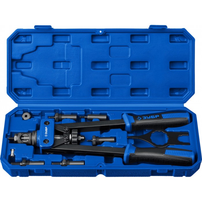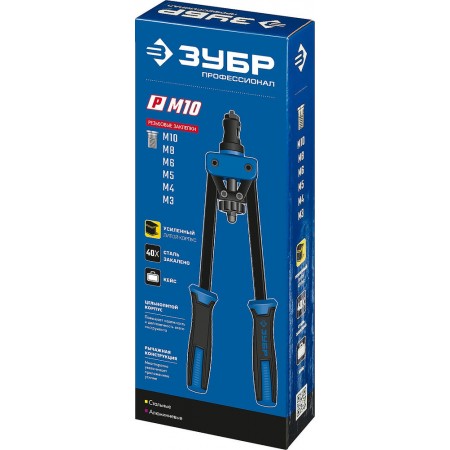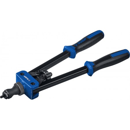Надежный инструмент для работы со стальными и алюминиевыми резьбовыми заклепками. Двухрычажная конструкция корпуса значительно облегчает работу.