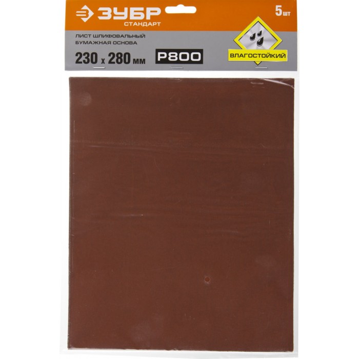 Лист шлифовальный водостойкий на бумажной основе Р800, 230 х 280 мм, 5 шт ЗУБР 35417-800