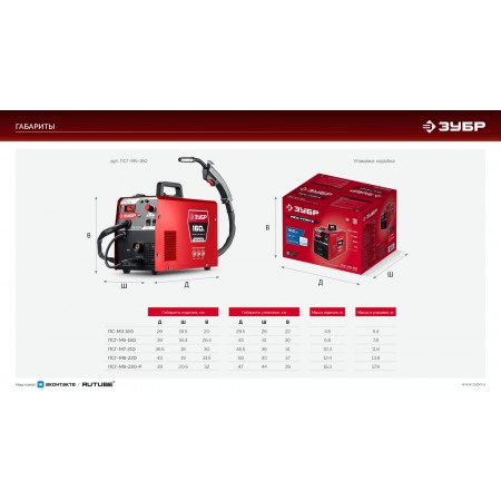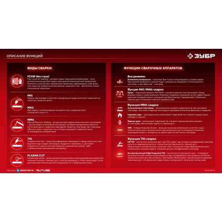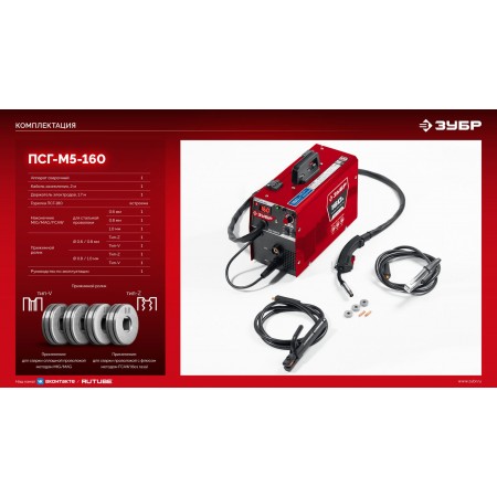 ЗУБР RED FORCE, MIG / MAG, FCAW, MMA, TIG, 160 А, полуавтомат сварочный, с газом / без газа, горелка ПСГ-180 (ПСГ-М5-160)