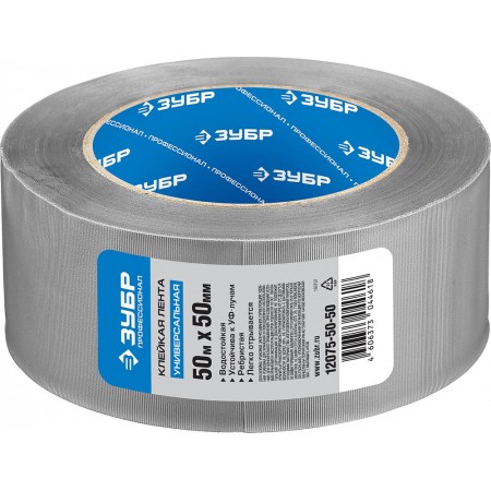 Лента клейкая ПВХ универсальная 50 мм, 50 м, серая Профессионал Рефил ЗУБР 12075-50-50