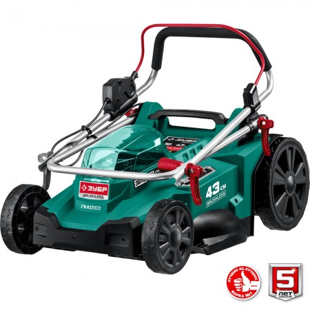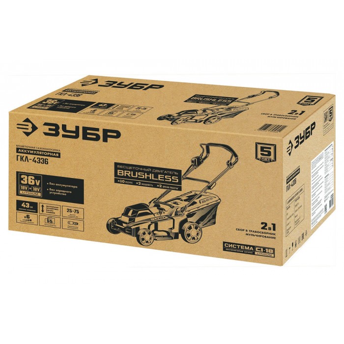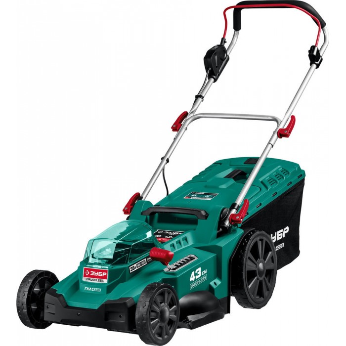 - Мощный двигатель напряжением 36 В ускоряет процесс обработки, а увеличенная ширина 43 см кошения ускоряют работу