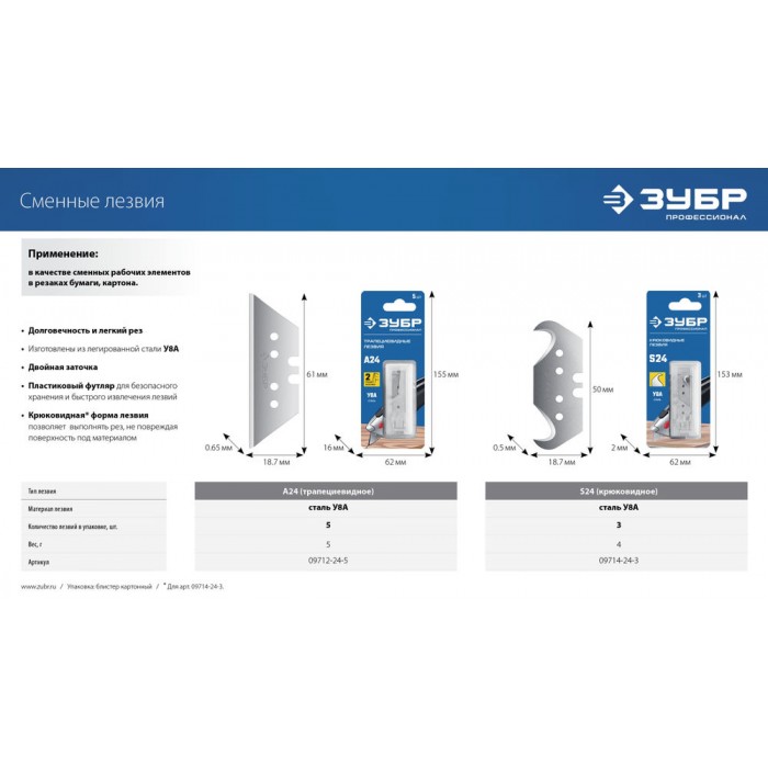Крюковидные лезвия для профессионального применения. Обладают повышенным ресурсом, обеспечивают длительную и качественную работу.