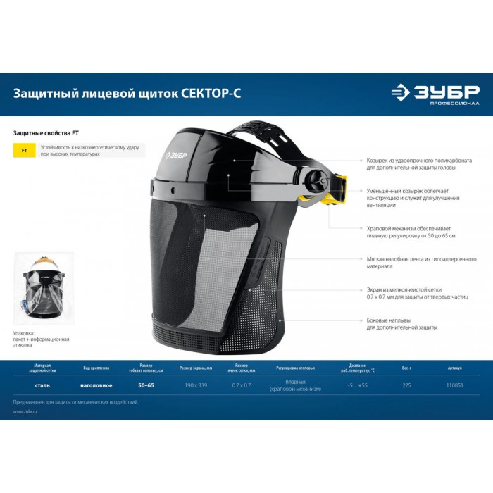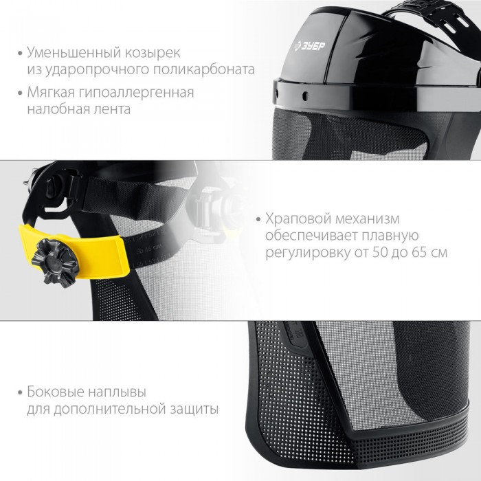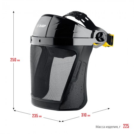 Щиток лицевой защитный экран 190 х 339 мм из мелкоячеистой сетки с храповиком Профессионал СЕКТОР-С ЗУБР 110851