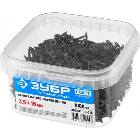 Саморез гипсокартон-дерево фосфатированный 16 х 3.5 мм, 1000 шт Профессионал СГД ЗУБР 300031-35-016
