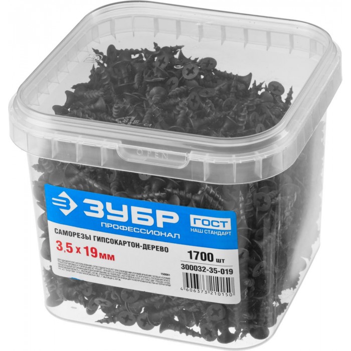 Саморез гипсокартон-дерево фосфатированный 19 х 3.5 мм, 1700 шт Профессионал СГД ЗУБР 300032-35-019
