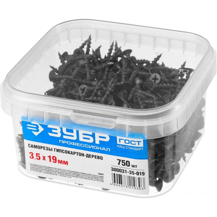 Саморез гипсокартон-дерево фосфатированный 19 х 3.5 мм, 750 шт Профессионал СГД ЗУБР 300031-35-019