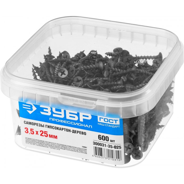 Саморез гипсокартон-дерево фосфатированный 25 х 3.5 мм, 600 шт Профессионал СГД ЗУБР 300031-35-025