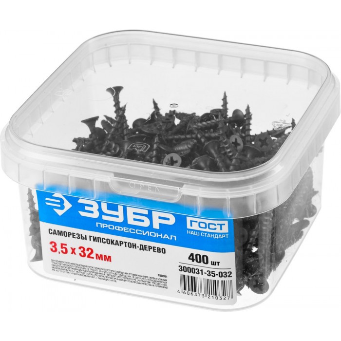 Саморез гипсокартон-дерево фосфатированный 32 х 3.5 мм, 400 шт Профессионал СГД ЗУБР 300031-35-032