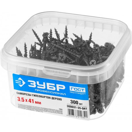 Саморез гипсокартон-дерево фосфатированный 41 х 3.5 мм, 300 шт Профессионал СГД ЗУБР 300031-35-041
