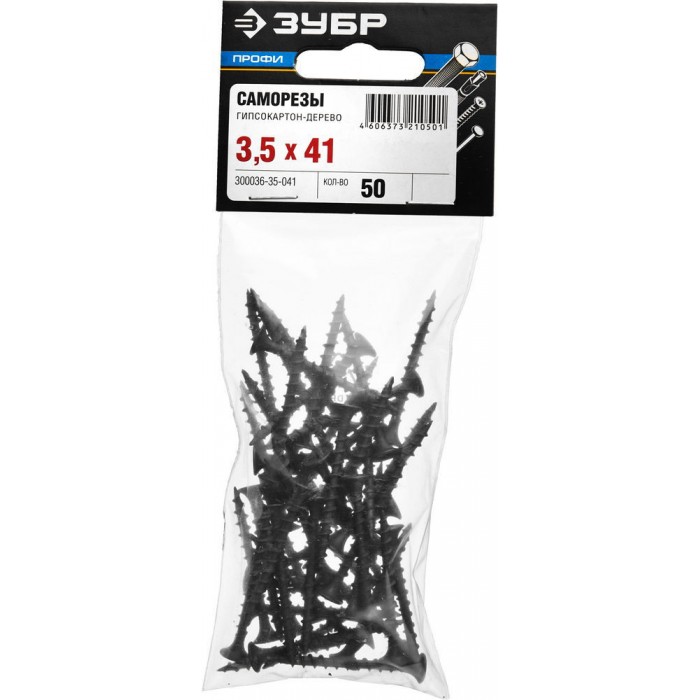 Саморез гипсокартон-дерево фосфатированный 41 х 3.5 мм, 50 шт Профессионал СГД ЗУБР 300036-35-041