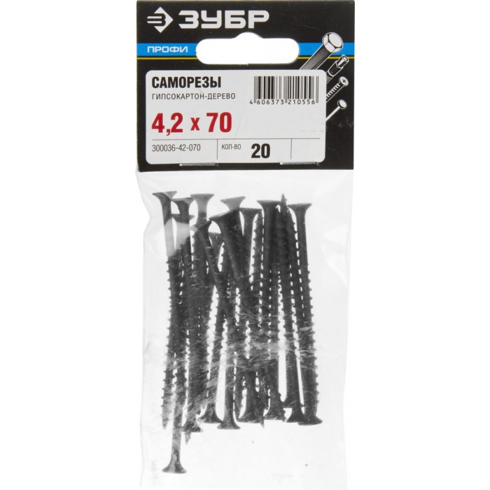 Саморез гипсокартон-дерево фосфатированный 70 х 4.2 мм, 20 шт Профессионал СГД ЗУБР 300036-42-070