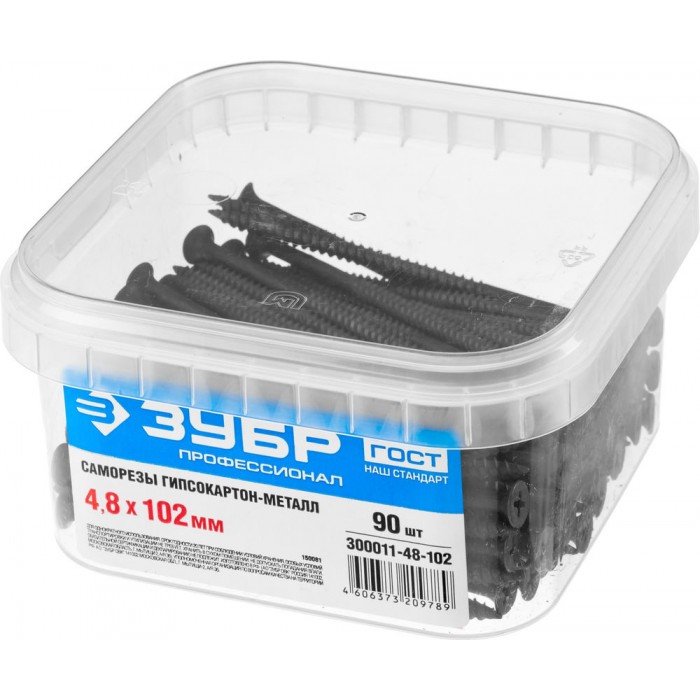 Саморез гипсокартон-металл фосфатированный 102 х 4.8 мм, 90 шт Профессионал СГМ ЗУБР 300011-48-102