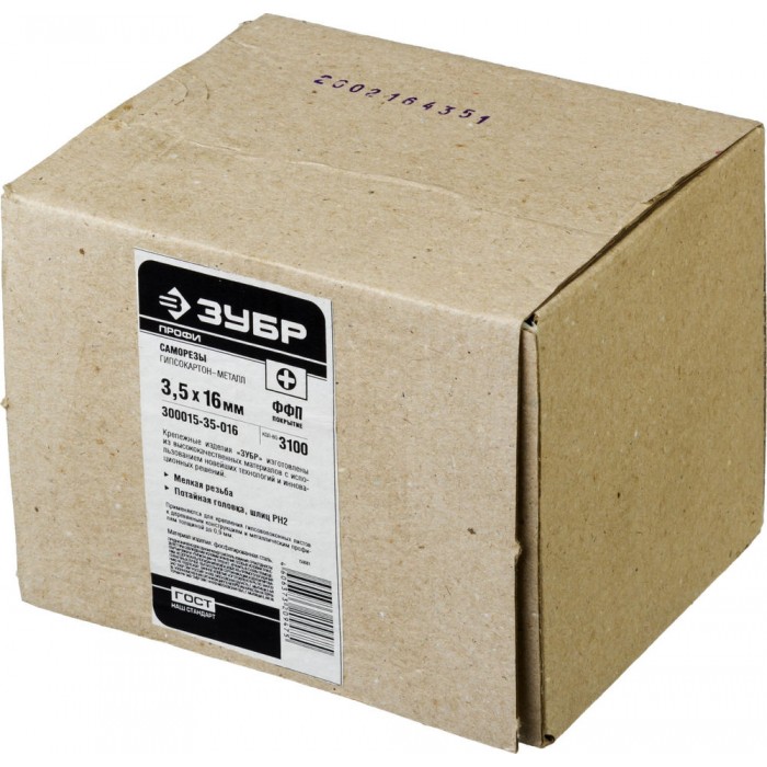 Саморез гипсокартон-металл фосфатированный 16 х 3.5 мм, 3100 шт Профессионал СГМ ЗУБР 300015-35-016