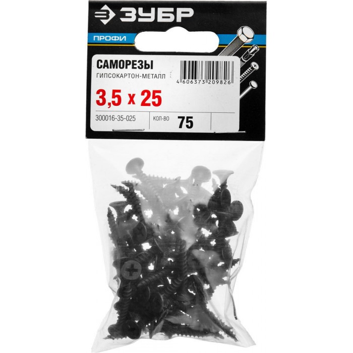 Саморез гипсокартон-металл фосфатированный 25 х 3.5 мм, 75 шт Профессионал СГМ ЗУБР 300016-35-025