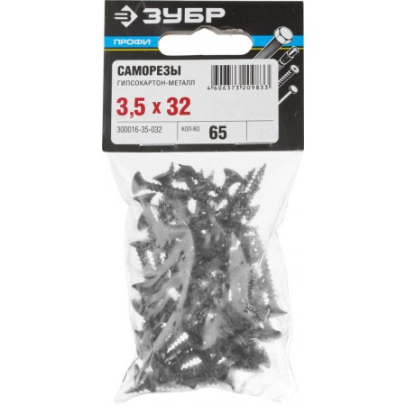 Саморез гипсокартон-металл фосфатированный 32 х 3.5 мм, 65 шт Профессионал СГМ ЗУБР 300016-35-032