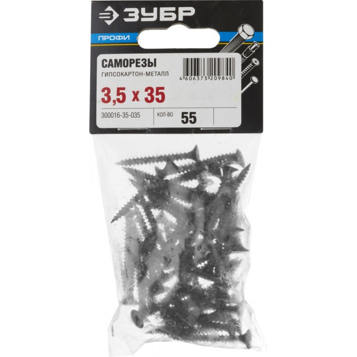 Саморез гипсокартон-металл фосфатированный 35 х 3.5 мм, 55 шт Профессионал СГМ ЗУБР 300016-35-035