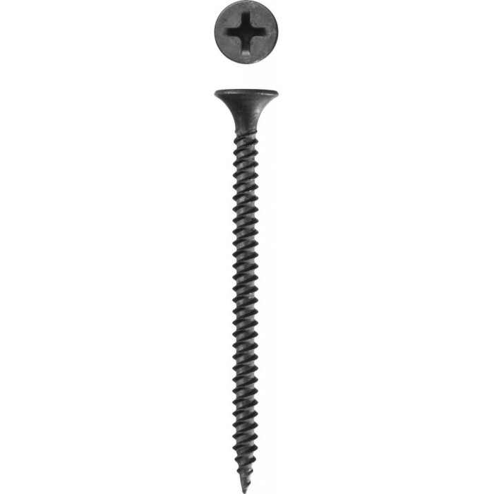 Саморезы для гипсокартона изготовлены из стального прутка с высоким содержанием углерода. Контроль за геометрией самореза начинается с калибровки прутка и заканчивается тщательной проверкой размеров готового изделия. Нормативная твердость стали достигается термической обработкой. Поверхностная твердость 550-720HV, твердость в сердцевине 290-450HV. Саморезы легко вкручиваются обычным шуруповертом или отверткой с крестообразным шлицем PH2 (DIN). Предварительное сверление в скрепляемых материалах не требуется.