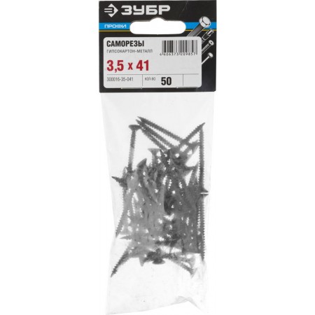 Саморез гипсокартон-металл фосфатированный 41 х 3.5 мм, 50 шт Профессионал СГМ ЗУБР 300016-35-041