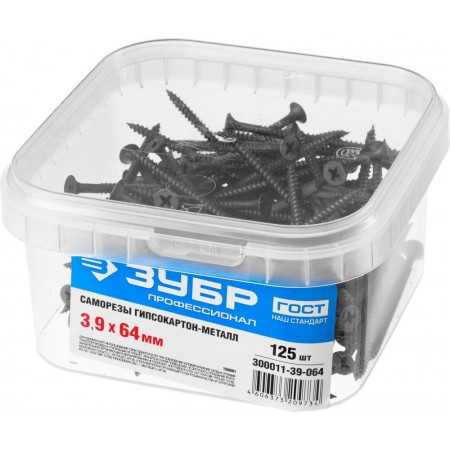 Саморез гипсокартон-металл фосфатированный 64 х 3.9 мм, 125 шт Профессионал СГМ ЗУБР 300011-39-064