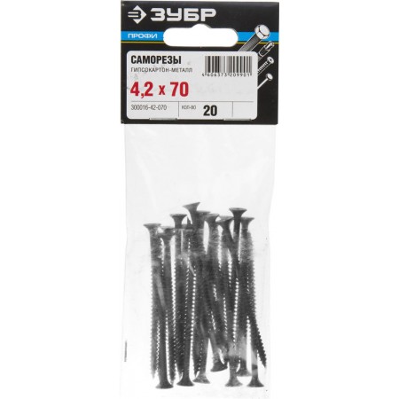 Саморез гипсокартон-металл фосфатированный 70 х 4.2 мм, 20 шт Профессионал СГМ ЗУБР 300016-42-070