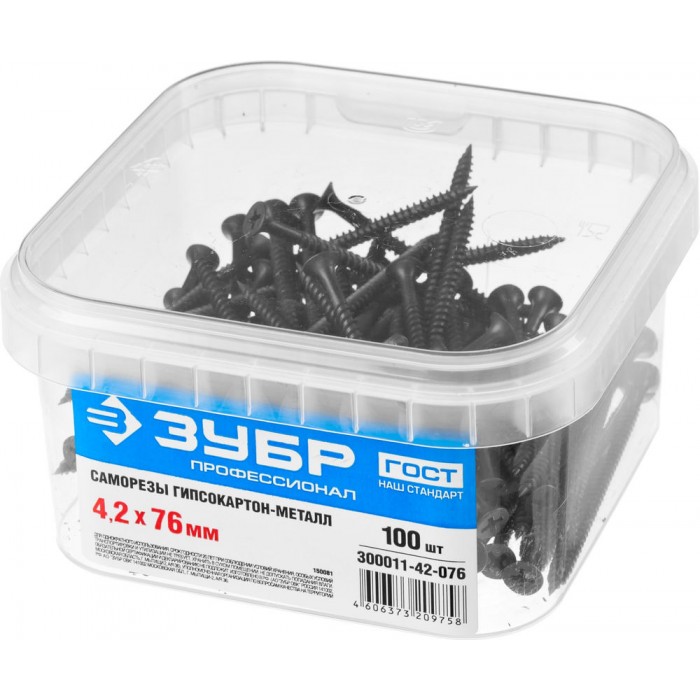 Саморез гипсокартон-металл фосфатированный 76 х 4.2 мм, 100 шт Профессионал СГМ ЗУБР 300011-42-076