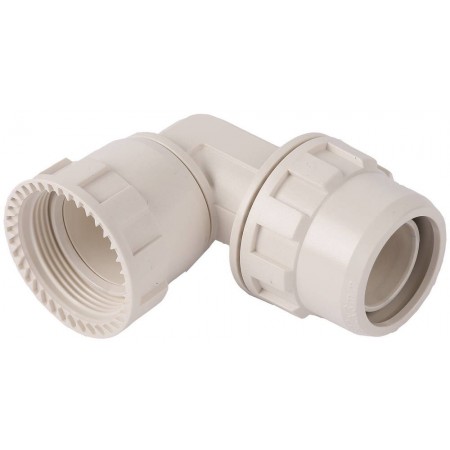 Для соединения двух участков трубопровода из металлопластиковых труб одного диаметра между собой, расположенную под углом 90˚, через накдную гайку и штуцер
