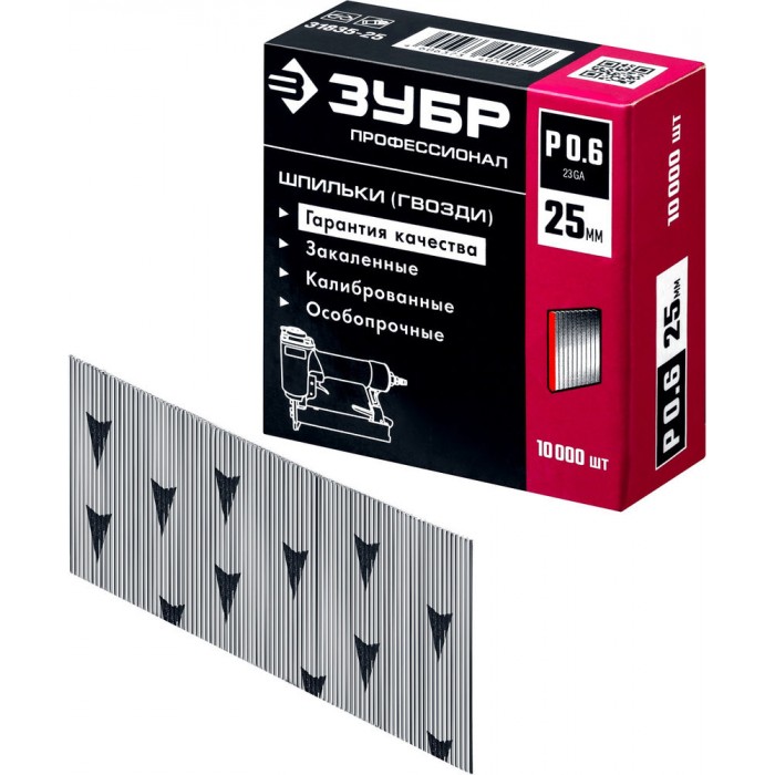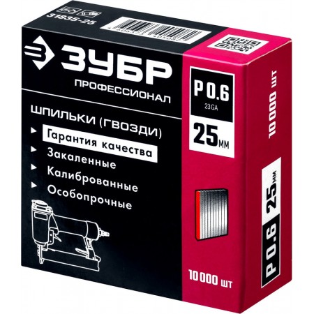 Шпильки для neйлера тип P0.6 25 мм, калибр 23GA, 10 000 шт ЗУБР Профессионал 31835-25