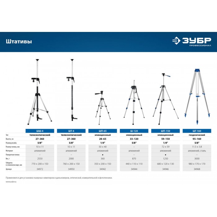 В качестве основного крепёжного элемента при установке лазерных нивелиров, оптической, измерительной и фототехники.