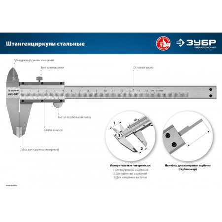 Штангенциркуль стальной ШЦ-1-250 250 мм ЗУБР Профессионал 34514-250