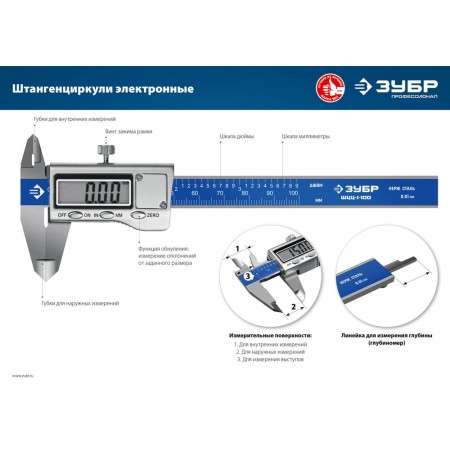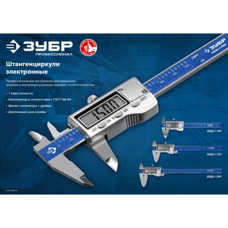 Электронный штангенциркуль 200 мм Профессионал ЗУБР ШЦЦ-I-200-0.01 34463-200
