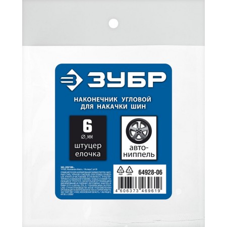 Переходник штуцер «елочка» 6 мм - наконечник угловой для накачки шин ЗУБР Профессионал 64928-06